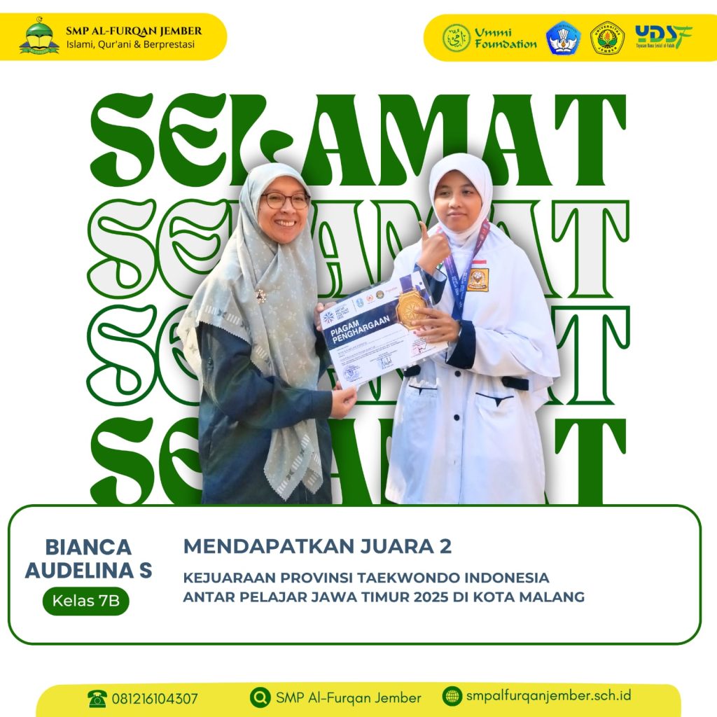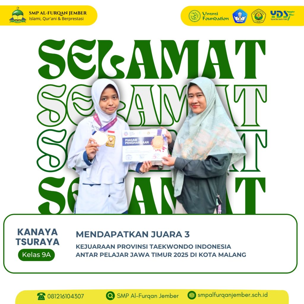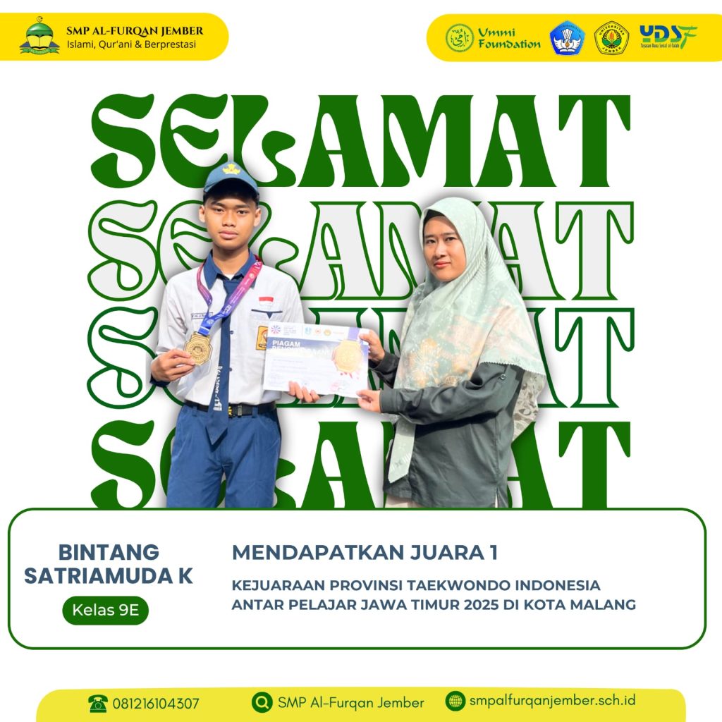 #PrestasiSiswa #Taekwondo #SMPAlFurqanJember #JuaraProvinsi #JawaTimur2025 #SekolahBerprestasi #BanggaJadiAlFurqan #PelajarBerprestasi #TaekwondoIndonesia