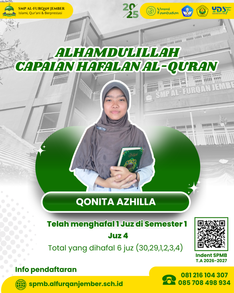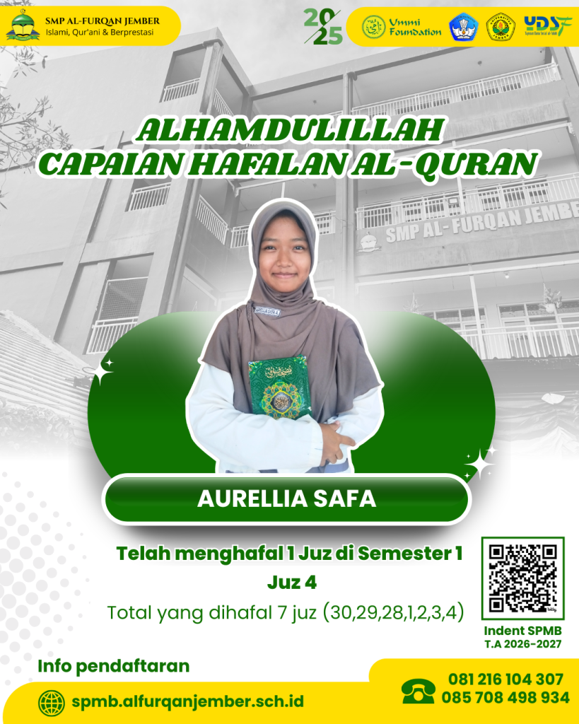 Alhamdulillah, rasa syukur yang mendalam kami panjatkan atas capaian luar biasa para siswi SMP Al-Furqan Jember yang senantiasa bersemangat dalam menjaga dan menghafal kalam Allah.